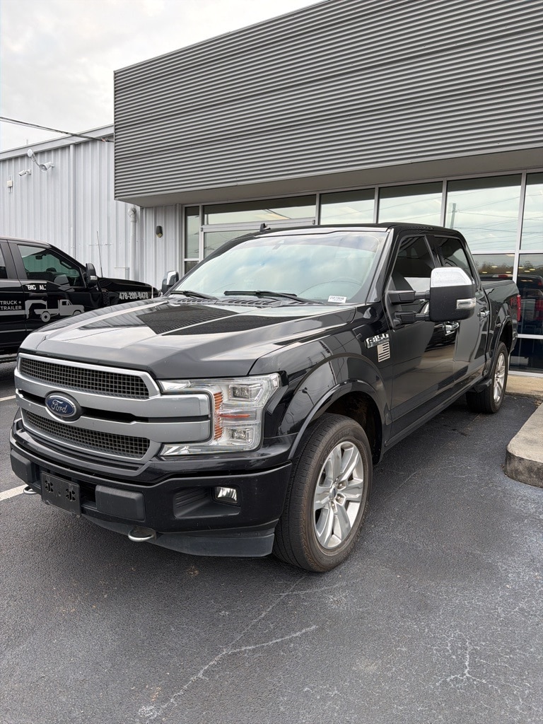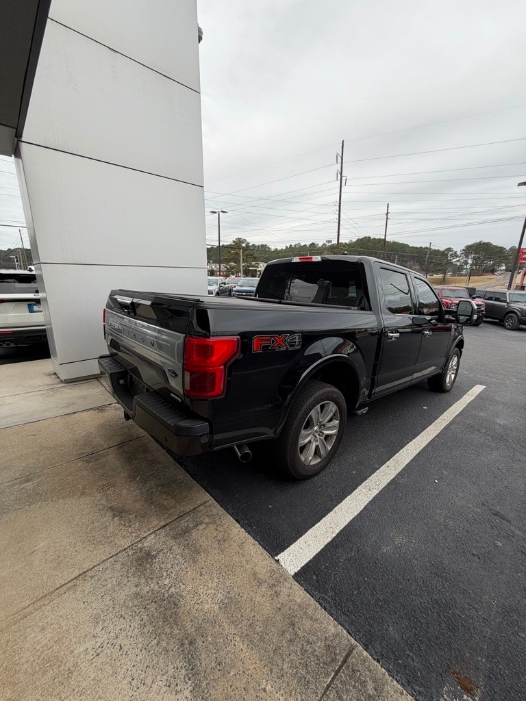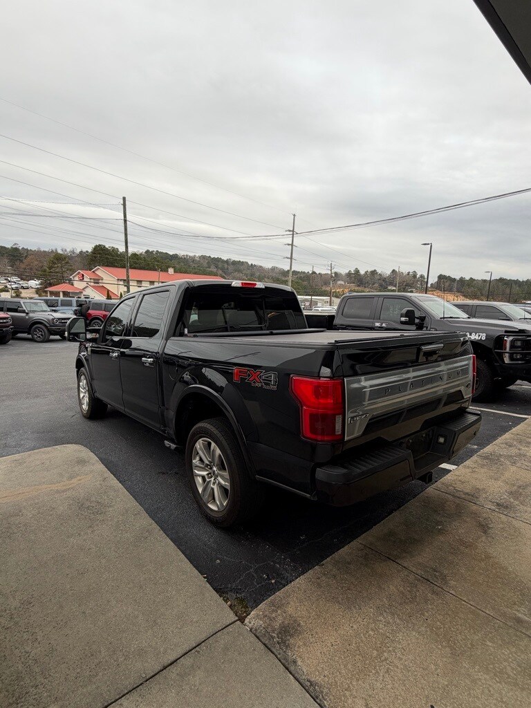 Black 2019 Ford F-150 Platinum 4WD FX4 4WD Platinum 4WD FX4 **LOCAL TRADE**, 360-Degree Camera, 4G WiFi Hotspot Telematics, 8" Color Touchscreen, Adaptive Cruise Control, Android Auto, Apple Carplay, Auto Emergency Braking, Auto LED Headlights, Backup Camera, Bluetooth w/ Audio Streaming, Hill Descent Control, Leather Seats, LED Foglights, Luxury Package, Memory Package, Off Road Package, Panoramic Sunroof/Moonroof, Power Mirror Package, Power Package, Power Running Boards, Power Sliding Rear Window, Pre Collision Assist w/ AEB, Premium Audio Package, Premium Sound Package, Pro Trailer Backup Assist, Pro Trailer Hitch Assist, Push Button Start, Remote Start, Skid Plate Package, 4D SuperCrew, 3.5L V6 EcoBoost, 10-Speed Automatic, 4WD, 10 Speakers, 20" Polished Aluminum Wheels, 4-Wheel Disc Brakes, 4x4 FX4 Off-Road Bodyside Decal, Active Park Assist, Adaptive Cruise Control, Adjustable pedals, AM/FM radio: SiriusXM, AppLink/Apple CarPlay and Android Auto, Auto High-beam Headlights, Auto tilt-away steering wheel, Auto-dimming door mirrors, Auto-dimming Rear-View mirror, Automatic temperature control, Black Unique Multi-Contour Leather Bucket Seats, Brake assist, Class IV Trailer Hitch Receiver, Compass, Delay-off headlights, Electronic Locking w/3.55 Axle Ratio, Electronic Stability Control, Emergency communication system: SYNC 3 911 Assist, Engine Oil Cooler, Equipment Group 701A Luxury, Extended Range 36 Gallon Fuel Tank, Exterior Parking Camera Rear, Front Center Armrest, Front dual zone A/C, Front fog lights, Front wheel independent suspension, Fully automatic headlights, FX4 Off-Road Package, Genuine wood door panel insert, GVWR: 7,050 lbs Payload Package, Heated door mirrors, Heated front seats, Heated rear seats, Heated steering wheel, Hill Descent Control, Illuminated entry, Integrated Trailer Brake Controller, Lane-Keeping System, Low tire pressure warning, Max Trailer Tow Package, Memory seat, Navigation System, Off-Road Tuned Front Shock Absorbers, Outside temperature display, Overhead console, Panic alarm, Pedal memory, Power door mirrors, Power passenger seat, Pro Trailer Backup Assist, Radio: B&O Sound System by Bang & Olufsen, Rain sensing wipers, Rear Parking Sensors, Rear seat center armrest, Rear step bumper, Remote keyless entry, Security system, Speed-sensing steering, Split folding rear seat, Steering wheel mounted audio controls, SYNC 3, Tailgate Step w/Tailgate Lift Assist, Technology Package, Telescoping steering wheel, Tilt steering wheel, Tough Bed Spray-In Bedliner, Traction control, Tray Style Floor Liner, Trip computer, Twin Panel Moonroof, Upgraded Front Stabilizer Bar, Ventilated front seats, Voice-Activated Touchscreen Navigation.