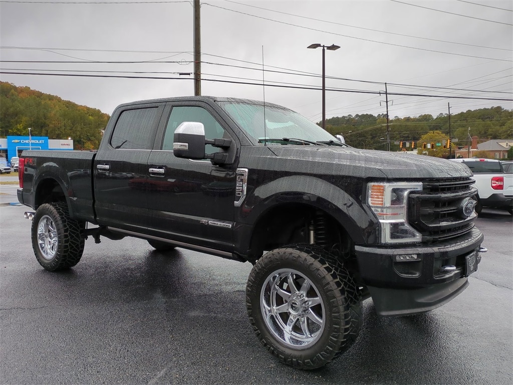 Agate Black Metallic 2021 Ford F-250SD Platinum 4WD FX4 4WD Platinum 4WD FX4 4G WiFi Hotspot Telematics, 8" Color Touchscreen, Adaptive Cruise Control, Auto LED Headlights, Backup Camera, Blind Spot Monitoring, BLIS w/ Cross Traffic Alert, Bluetooth w/ Audio Streaming, Hill Descent Control, Leather Seats, LED Foglights, Memory Package, Off Road Package, Power Mirror Package, Power Package, Power Running Boards, Power Sliding Rear Window, Preferred Equipment Package, Premium Audio Package, Premium Sound Package, Pro Trailer Backup Assist, Pro Trailer Hitch Assist, Push Button Start, Remote Start, Safety Package, Skid Plate Package, Wireless Charging Pad, 4D Crew Cab, Power Stroke 6.7L V8 DI 32V OHV Turbodiesel, 10-Speed Automatic, 4WD, 10 Speakers, 110V/400W Outlet, 397 Amp Alternator, 4-Wheel Disc Brakes, 5th Wheel/Gooseneck Hitch Prep Package, ABS brakes, Adaptive Cruise Control & Collision Warning, Adjustable pedals, AM/FM radio: SiriusXM, Auto High-beam Headlights, Auto-dimming Rear-View mirror, Automatic temperature control, Brake assist, Compass, Delay-off headlights, Electronic Stability Control, Electronic-Locking w/3.31 Axle Ratio, Emergency communication system: SYNC 3 911 Assist, Engine Block Heater, Exterior Parking Camera Rear, Front Center Armrest, Front dual zone A/C, Front fog lights, Fully automatic headlights, FX4 Off-Road Package, GVWR: 10,000 lb Payload Package, Heated door mirrors, High Capacity Trailer Tow Package, Hill Descent Control, Illuminated entry, Lane-Keeping Alert, Leather steering wheel, Low tire pressure warning, Navigation System, Off-Road Specifically Tuned Shock Absorbers, Order Code 703A, Outside temperature display, Overhead console, Panic alarm, Power driver seat, Power passenger seat, Power steering, Power windows, Pro Trailer Backup Assist - High Capacity, Radio: B&O System by Bang & Olufsen, Rapid-Heat Supplemental Cab Heater, Rear Parking Sensors, Rear seat center armrest, Rear step bumper, Remote keyless entry, Security system, SiriusXM Radio, Split folding rear seat, Steering wheel mounted audio controls, SYNC 3 Communications & Entertainment System, Telescoping steering wheel, Tilt steering wheel, Traction control, Trip computer, Turn signal indicator mirrors, Twin Panel Power Moonroof, Ultimate Trailer Tow Camera System, Unique FX4 Off-Road Box Decal, Upfitter Switches (6), Variably intermittent wipers, Voice-Activated Navigation, Wireless Charging Pad.