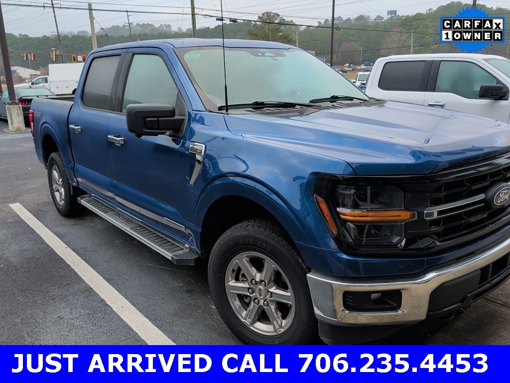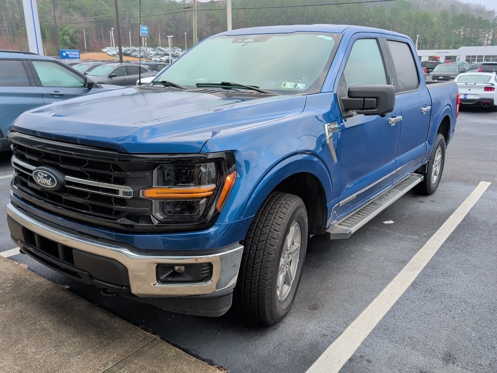 Atlas Blue Metallic 2024 Ford F-150 XLT 4WD Hybrid 4WD XLT 4WD Hybrid 12" LCD Productivity Touchscreen, 5G WiFi Hotspot Telematics, Auto Emergency Braking, Auto LED Headlights, Backup Camera, Blind Spot Monitoring, BLIS w/ Cross Traffic Alert, Bluetooth w/ Audio Streaming, Lane Keeping System, LED Foglights, Parking Sensors, Post Collision Braking, Power Mirror Package, Power Package, Pre Collision Assist w/ AEB, Pro Trailer Backup Assist, Pro Trailer Hitch Assist, Reverse Brake Assist, Reverse Sensing, Tow Package, Trailer Package, XLT Package, 4D SuperCrew, 3.5L PowerBoost Full-Hybrid V6, 10-Speed Automatic, 4WD, 4-Wheel Disc Brakes, ABS brakes, AM/FM radio: SiriusXM with 360L, Auto High-beam Headlights, Auto-dimming Rear-View mirror, Automatic temperature control, Brake assist, Cloth 40/Console/40 Front Seats, Compass, Console Worksurface, Delay-off headlights, Electronic Locking w/3.73 Axle Ratio, Electronic Stability Control, Emergency communication system: SYNC 4 911 Assist, Equipment Group 301A Standard, Front Center Armrest w/Storage, Front dual zone A/C, Front fog lights, Front wheel independent suspension, Fully automatic headlights, Heated door mirrors, Illuminated entry, Low tire pressure warning, Mobile Office Package, Navigation system: Connected Navigation, Outside temperature display, Overhead console, Panic alarm, Partitioned Lockable Rear Storage, Power door mirrors, Power driver seat, Power steering, Power windows, Radio data system, Radio: AM/FM SiriusXM w/360L, Rear step bumper, Remote keyless entry, Security system, Speed control, Split folding rear seat, Steering wheel mounted audio controls, SYNC 4 w/Enhanced Voice Recognition, Telescoping steering wheel, Tilt steering wheel, Traction control, Trip computer, Variably intermittent wipers, Wheels: 18" Chrome-Like PVD.