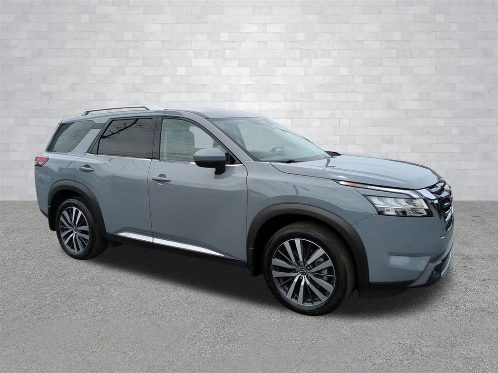 Boulder Gray Pearl 2022 Nissan Pathfinder Platinum 4WD 4WD Platinum 4WD 12.3" HD Color Driver Cluster, 360-Degree Camera, 3rd Row Seating, Android Auto, Apple Carplay, Auto Emergency Braking, Auto LED Headlights, Backup Camera, Blind Spot Monitoring, Bluetooth w/ Audio Streaming, Bose High End Sound Package, Cold Weather Package, Foward Collison Alert, Front & Rear Park Assist, Lane Departure Warning, Lane Keeping System, Leather Seats, LED Foglights, Memory Package, Multi Zone Climate Control, Panoramic Sunroof/Moonroof, Parking Sensors, Power Mirror Package, Power Package, Premium Sound Package, Push Button Start, Rear Climate Package, Rear Cross Traffic Alert, Remote Start, Reverse Brake Assist, Reverse Sensing, Safety Package, Third Row Seating, Tow Package, Traffic Sign Recognition, Trailer Package, Wireless Charging Pad, 4D Sport Utility, V6, 9-Speed Automatic, 4WD, 13 Speakers, 3rd row seats: bench, 4-Wheel Disc Brakes, ABS brakes, AM/FM radio: SiriusXM, Auto High-beam Headlights, Auto tilt-away steering wheel, Auto-dimming Rear-View mirror, Automatic temperature control, Bose Premium Audio System, Brake assist, Cargo Area Protector, Cargo Net, Cargo Package, Climate Controlled Front Bucket Seats, Delay-off headlights, Electronic Stability Control, Emergency communication system: NissanConnect Services, Exterior Parking Camera Rear, First Aid Kit, Four wheel independent suspension, Front Center Armrest, Front dual zone A/C, Front fog lights, Fully automatic headlights, Garage door transmitter: HomeLink, Heads-Up Display, Heated door mirrors, Heated front seats, Heated steering wheel, Illuminated entry, Leather steering wheel, Low tire pressure warning, Memory seat, Navigation system: NissanConnect Navigation, Outside temperature display, Overhead console, Panic alarm, Platinum Bench Seat Package, Power door mirrors, Power moonroof, Power passenger seat, Radio data system, Rain sensing wipers, Rear air conditioning, Rear window wiper, Remote keyless entry, Security system, Semi-Aniline Leather Seating Surfaces, Speed-sensing steering, Speed-Sensitive Wipers, Split folding rear seat, Spoiler, Steering wheel memory, Steering wheel mounted audio controls, Telescoping steering wheel, Tilt steering wheel, Traction control, Trip computer, Turn signal indicator mirrors, Ventilated front seats, Wheels: 20" Alloy w/Unique Finish.