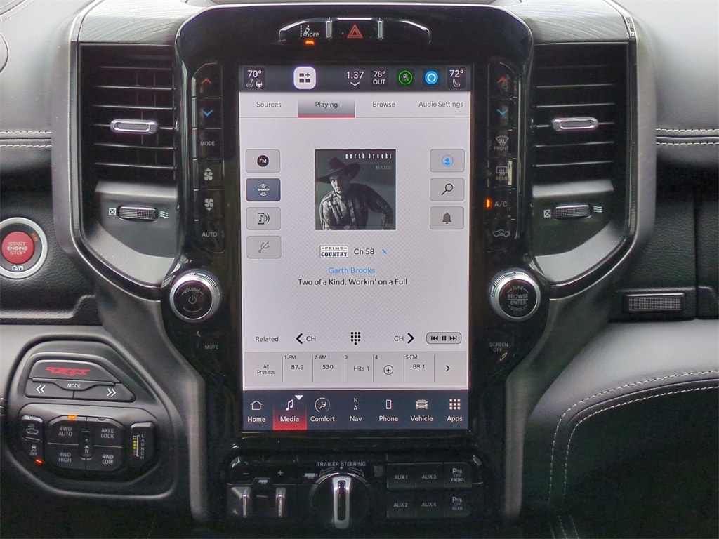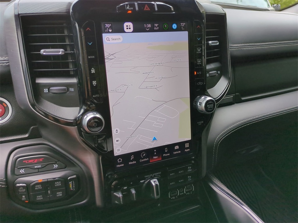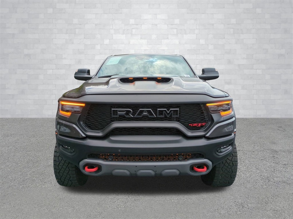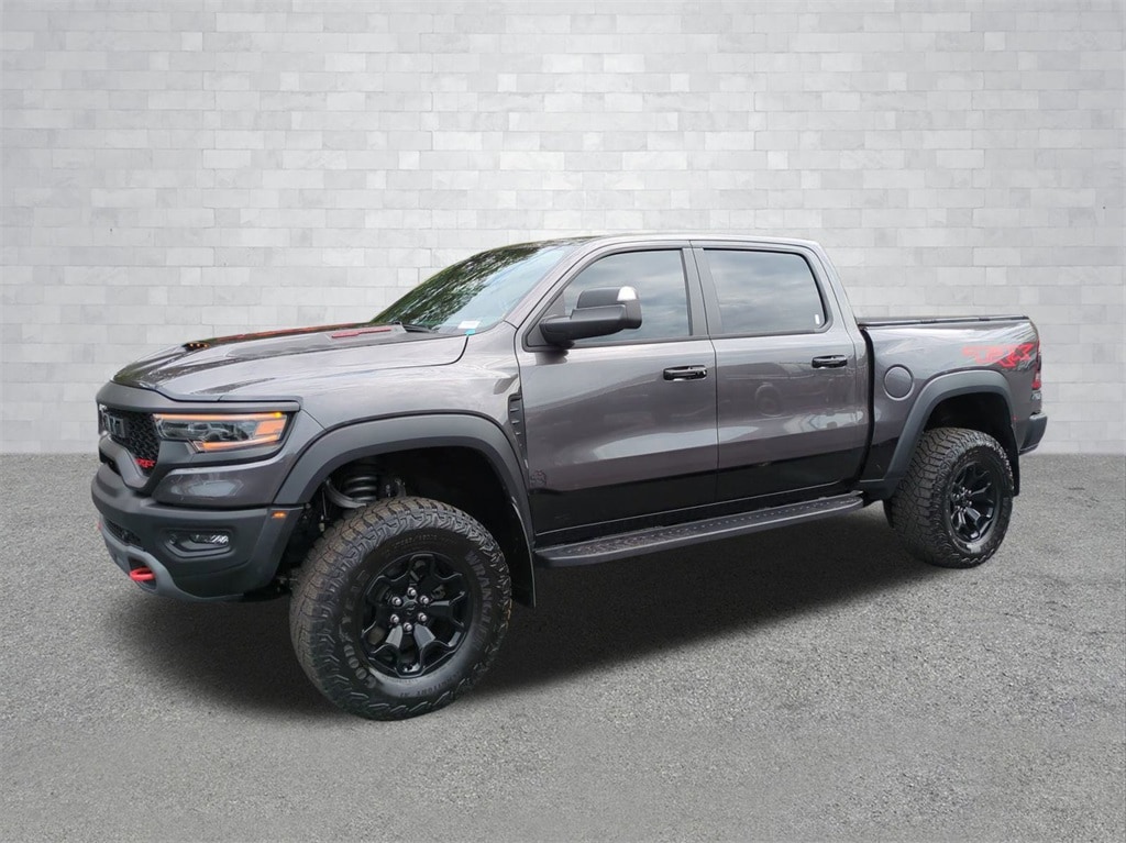 Granite Crystal Metallic Clearcoat 2023 Ram 1500 TRX 4WD 4WD TRX 4WD 12" LCD Productivity Touchscreen, Adaptive Suspension, Android Auto, Apple Carplay, Backup Camera, Blind Spot Monitoring, Bluetooth w/ Audio Streaming, Cold Weather Package, Front & Rear Park Assist, Front Pedestrian Braking, Hill Descent Control, Lane Keeping System, Leather Seats, LED Foglights, Memory Package, Multimedia Package, Off Road Package, Parking Sensors, Performance Handling Package, Performance Package, Power Mirror Package, Power Package, Power Sliding Rear Window, Preferred Equipment Package, Premium Audio Package, Premium Sound Package, Pro Trailer Backup Assist, Pro Trailer Hitch Assist, Push Button Start, Rear Cross Traffic Alert, Remote Start, Reverse Brake Assist, Reverse Sensing, Safety Package, Skid Plate Package, Tow Package, Trailer Package, TUNER, Upgraded Exhaust, 4D Crew Cab, 6.2L Supercharged HEMI V8 SRT, 8-Speed Automatic, 4WD, #2 Seat Foam Cushion, 2-Door Passive Entry, Front Door Locks, 4 Way Front Headrests, 4-Wheel Disc Brakes, ABS brakes, Accent Color Door Handles, Adaptive Cruise Control w/Stop & Go, Advanced Safety Group, Apple CarPlay/Android Auto, Auto High-beam Headlights, Auto-dimming door mirrors, Auto-dimming Rear-View mirror, Automatic temperature control, Black Exterior Mirrors, Black Power-Fold Trailer Tow Mirrors, Blind Spot & Cross Path Detection, Bucket Seats, Center Console Parts Module, Compass, Delay-off headlights, Digital Rearview Mirror, Driver Seat Memory, Driver/Passenger Wrapped Assist Handles, Electronic Stability Control, Exterior Mirrors Courtesy Lamps, Exterior Mirrors w/Heating Element, Exterior Mirrors w/Memory, Exterior Mirrors w/Supplemental Signals, Front Center Armrest w/Storage, Front Door Accent Lighting, Front dual zone A/C, Front fog lights, Front Seat Back Map Pockets, Front wheel independent suspension, Full Length Premium Upgraded Floor Console, Fully automatic headlights, harman/kardon 19 Speaker Premium Sound, Heads-Up Display, Heated door mirrors, Heated Front Seats, Heated Second Row Seats, Heated Steering Wheel, Illuminated entry, IP LED Ambient Light Pipe, Lane Keep Assist, Leather Shift Knob, Leather steering wheel, Leather Trimmed Bucket Seats, Leather/Suede Flat-Bottom Steering Wheel, LED CHMSL Lamp, Low tire pressure warning, Luxury Front Door Trim Panel, Mirror Clearance/Running Lights, Mirror-Mounted Aux Reverse Lamps, MOPAR Bright Pedal Kit, MOPAR Off-Road Style Running Boards, Navigation System, Outside temperature display, Overhead console, ParkSense Front/Rear Park Assist w/Stop, ParkView Rear Back-Up Camera, Pedestrian Emergency Braking, Pick-Up Box Lighting, Power 4-Way Driver Lumbar Adjust, Power 4-Way Passenger Lumbar Adjust, Power 8-Way Driver & Passenger Seats, Power Adjustable Pedals w/Memory, Power door mirrors, Power-Folding Mirrors, Premium Wrapped IP Bezel, Quick Order Package 29Y, Radio data system, Radio: Uconnect 5 Nav w/12.0" Display, Radio/Driver Seat/Mirrors/Pedals Memory, Rain Sensitive Windshield Wipers, Rear 60/40 Folding Seat, Rear 60/40 Folding Split Recline Seat, Rear Door Accent Lighting, Rear seat center armrest, Rear step bumper, Rear Underseat Compartment Storage, Rear Window Defroster, Remote keyless entry, Remote Tailgate Release, Sport steering wheel, Steering wheel mounted audio controls, Sun Visors w/Illuminated Vanity Mirrors, Surround View Camera System, Tailgate Ajar Warning Lamp, Telescoping steering wheel, Tilt steering wheel, Traction control, Trailer Brake Control, Trailer Reverse Steering Control, Trailer Tow Mirrors, Trip computer, TRX Level 2 Equipment Group, Turn signal indicator mirrors, Universal Garage Door Opener, Ventilated Front Seats, Ventilated Rear Seats, Wheels: 18" x 9" Black Paint/Polish Aluminum, Wireless Chargi